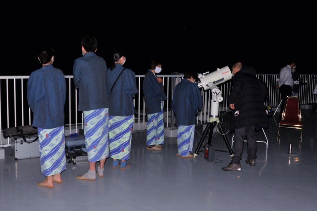 第一回目のスターパーティーは2017年の1月に開催しました。当初2か月に1回開催したスターパーティーはお客様からの高評価を得て、現在では月に2回開催され、今年の6月5日には92回目を向かえました。海風が心地よい夏場はもちろん、真冬の寒い日も多くのお客様や地元の方々が参加され、これまでにおよそ6000人余りの方々が天体望遠鏡をのぞき月面のクレーター、土星の輪、木星の縞模様などに感嘆の声を上げられました。